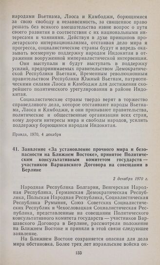 Заявление «За установление прочного мира и безопасности на Ближнем Востоке», принятое Политическим консультативным комитетом государств — участников Варшавского Договора на совещании в Берлине. 2 декабря 1970 г.