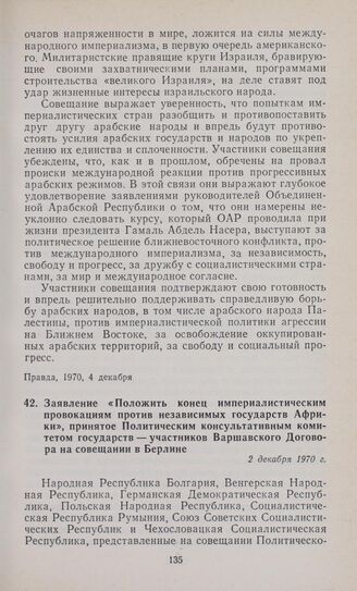 Заявление «Положить конец империалистическим провокациям против независимых государств Африки», принятое Политическим консультативным комитетом государств — участников Варшавского Договора на совещании в Берлине. 2 декабря 1970 г.