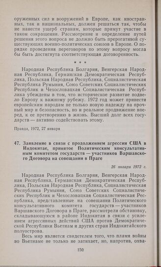 Заявление в связи с продолжением агрессии США в Индокитае, принятое Политическим консультативным комитетом государств — участников Варшавского Договора на совещании в Праге. 26 января 1972 г.