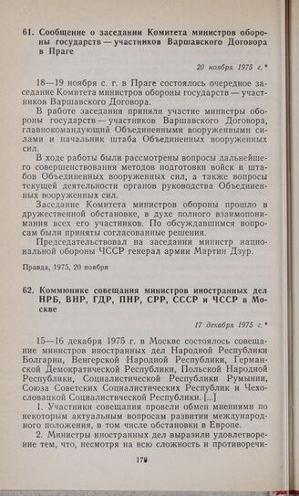 Сообщение о заседании Комитета министров обороны государств — участников Варшавского Договора в Праге. 20 ноября 1975 г.