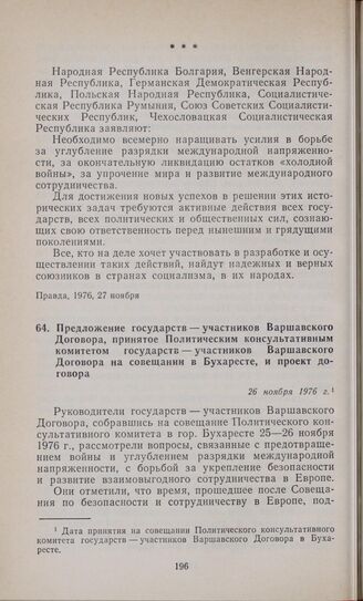 Предложение государств — участников Варшавского Договора, принятое Политическим консультативным комитетом государств — участников Варшавского Договора на совещании в Бухаресте, и проект договора. 26 ноября 1976 г.