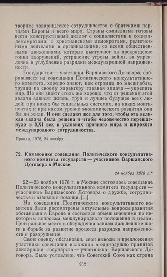 Коммюнике совещания Политического консультативного комитета государств — участников Варшавского Договора в Москве. 24 ноября 1978 г. // Правда, 1978, 24 ноября.