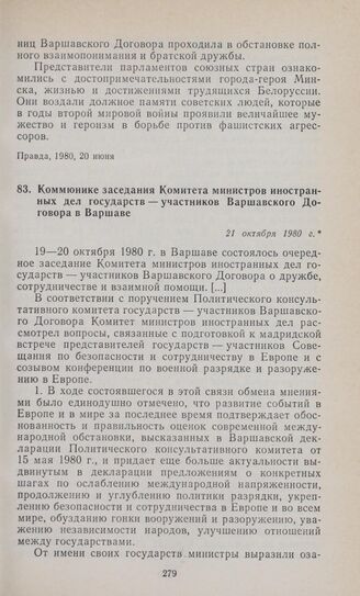 Коммюнике заседания Комитета министров иностранных дел государств — участников Варшавского Договора в Варшаве. 21 октября 1980 г. // Правда, 1980, 21 октября.