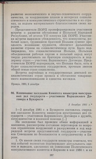 Коммюнике заседания Комитета министров иностранных дел государств — участников Варшавского Договора в Бухаресте. 3 декабря 1981 г. // Правда, 1981, 3 декабря.