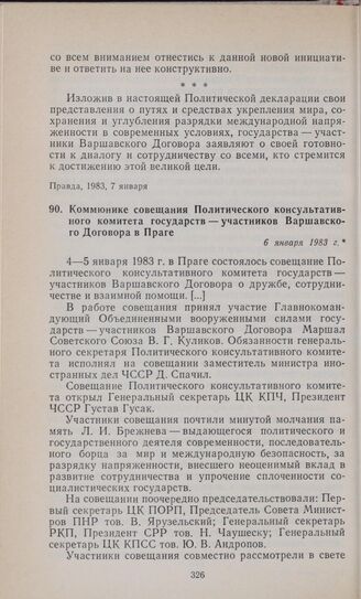 Коммюнике совещания Политического консультативного комитета государств — участников Варшавского Договора в Праге. 6 января 1983 г.