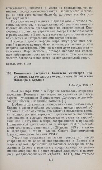 Коммюнике заседания Комитета министров иностранных дел государств — участников Варшавского Договора в Берлине. 5 декабря 1984 г.