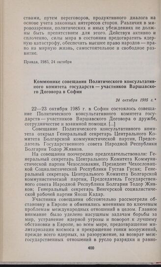 Коммюнике совещания Политического консультативного комитета государств — участников Варшавского Договора в Софии. 24 октября 1985 г.