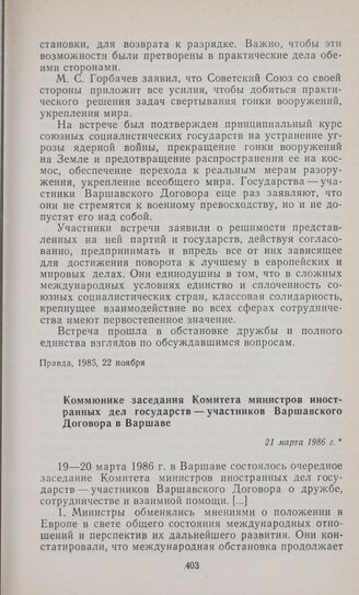 Коммюнике заседания Комитета министров иностранных дел государств — участников Варшавского Договора в Варшаве. 21 марта 1986 г.