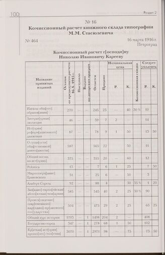 Комиссионный расчет книжного склада типографии М.М. Стасюлевича. 16 марта 1916 г. Петроград