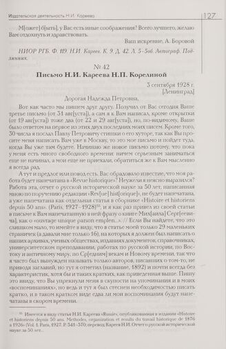 Письмо Н.И. Кареева Н.П. Корелиной. 3 сентября 1928 г. [Ленинград]