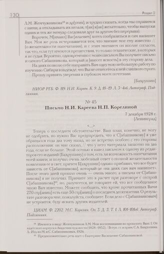 Письмо Н.И. Кареева Н.П. Корелиной. 7 декабря 1928 г. [Ленинград]