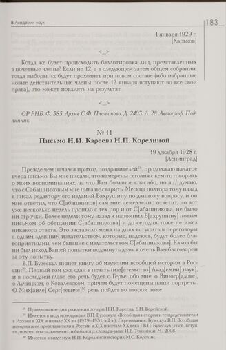 Письмо В.П. Бузескула С.Ф. Платонову о готовящихся выборах в Академию наук СССР. 1 января 1929 г. [Харьков]