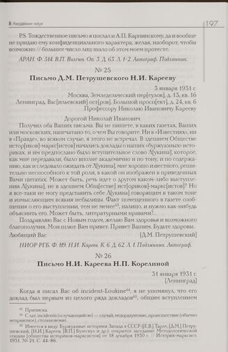 Письмо Д.М. Петрушевского Н.И. Карееву. 3 января 1931 г. Москва