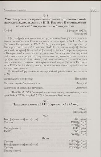 Удостоверение на право пользования дополнительной жилплощадью, выданное Н.И. Карееву Петроградской комиссией по улучшению быта ученых. 12 февраля 1923 г. [Петроград]