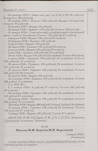 Главная Ученый в эпоху перемен. Н.И. Кареев в 1914-1931 гг. Письмо Н.И. Кареева Н.П. Корелиной. 5 января 1928 г. [Ленинград]