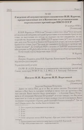 Сведения об имущественном положении Н.И. Кареева, предоставленные им в Комиссию по установлению персональных премий при НКСО СССР. 21 ноября 1930 г. [Ленинград] // ГА РФ. Ф. А-539. Комиссия по установлению персональных премий при Совете министров РСФСР. Оп. 3. Д. 9032. Л. 8. Автограф. Подлинник.