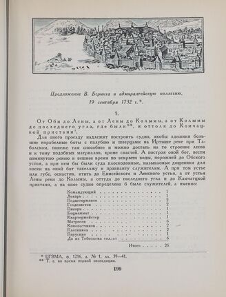 Предложение В. Беринга в адмиралтейскую коллегию, 19 сентября 1732 г. // ЦГВМА, ф. 1216, д. № 1, лл. 39-41.