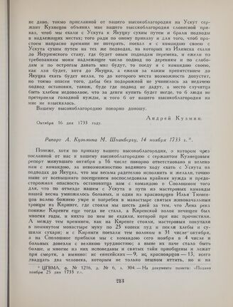 Рапорт А. Кузьмина М. Шпанбергу, 14 ноября 1733 г. // ЦГВМА, ф. № 1216, д. № 6, л. 304.