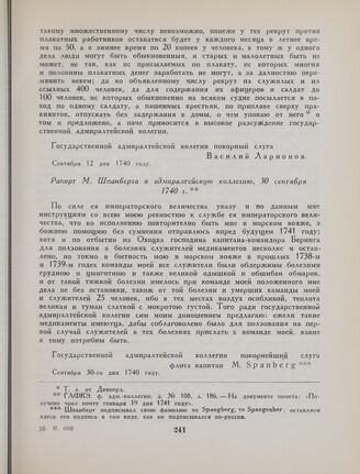 Рапорт М. Шпанберга в адмиралтейскую коллегию, 30 сентября 1740 г.