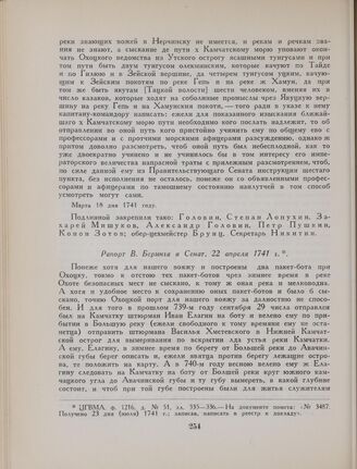Рапорт В. Беринга в Сенат, 22 апреля 1741 г. // ЦГВМА, ф. 1216, д. № 51, лл. 335-336.