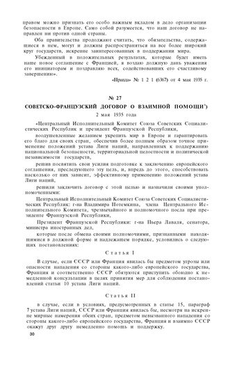Советско-французский договор о взаимной помощи. 2 мая 1935 года // «Правда», № 121 (6367) от 4 мая 1935 г.