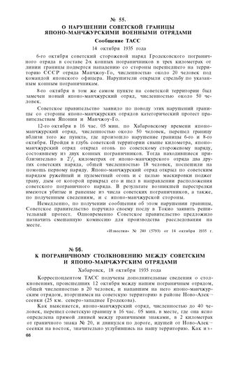 К пограничному столкновению между советским и японо-манчжурским отрядами. Хабаровск, 18 октября 1935 года // «Правда», № 290 (6536) от 20 октября 1935 г.