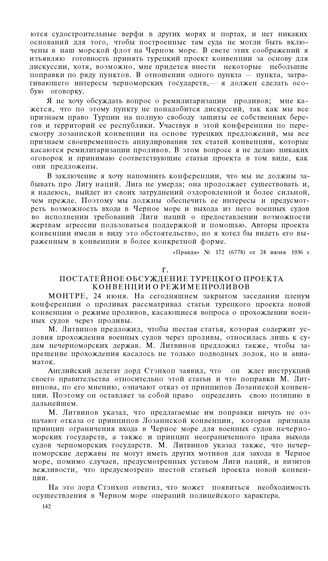 Конференция в Монтре по вопросу о режиме проливов. 22 июня-21 июля 1936 года. Постатейное обсуждение турецкого проекта конвенции о режиме проливов // «Правда», № 174 (6780) от 26 июня 1936 г.
