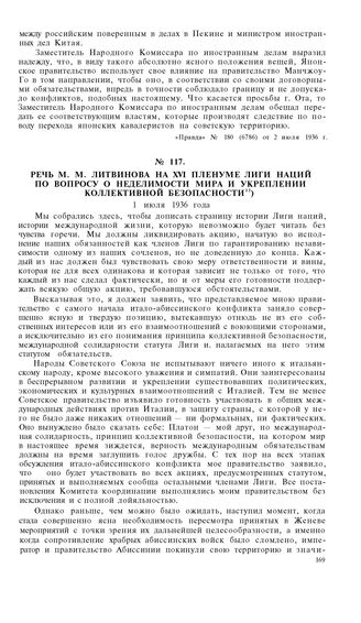 Речь М.М. Литвинова на XVI Пленуме Лиги Наций по вопросу о неделимости мира и укреплении коллективной безопасности. 1 июля 1936 года