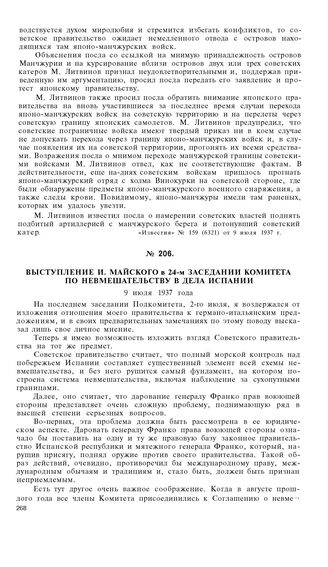 Выступление И. Майского в 24-м заседании Комитета по невмешательству в дела Испании. 9 июля 1937 года
