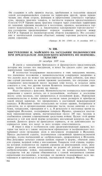 Выступление И. Майского на заседании подкомиссии при председателе Лондонского комитета по невмешательству. 16 октября 1937 года