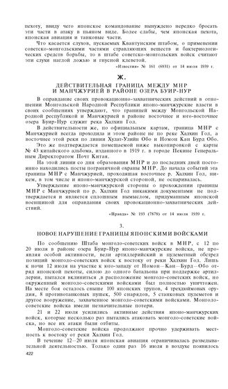 Конфликт на Монголо-Манчжурской границе в районе Халхин Гол. 11 мая-16 сентября 1939 года. Действительная граница между МНР и Манчжурией в районе озера Буир-Нур // «Правда», № 193 (7878) от 14 июля 1939 г.