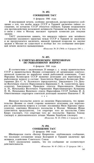 Сообщение ТАСС. 4 февраля 1941 года // «Известия», № 28 (7404) от 4 февраля 1941 г.