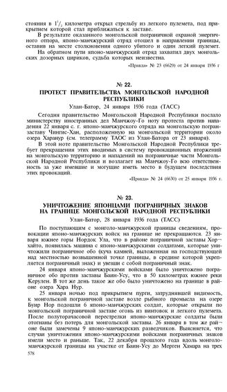 Протест правительства Монгольской Народной Республики. Улан-Батор, 24 января 1936 года (ТАСС) // «Правда», № 24 (6630) от 25 января 1936 г.
