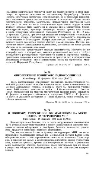 Опровержение токийского радиосообщения. Улан-Батор, 15 февраля 1936 года (ТАСС) // «Правда», № 46 (6652) от 16 февраля 1936 г.