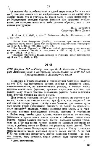 1750 февраля 19. — Рапорт мастера И. А. Соколова в Канцелярию Академии наук о материалах, необходимых на 1750 год для Гравировальной и Ландкартной палат