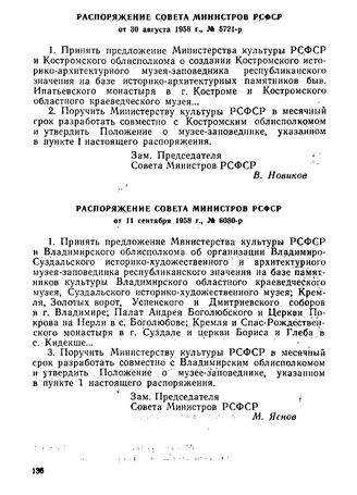 Распоряжение Совета Министров РСФСР от 11 сентября 1958 г., № 6080-р