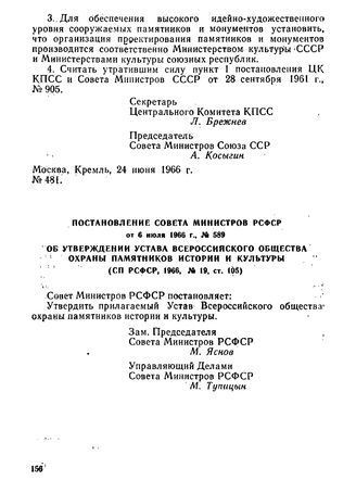 Постановление Совета Министров РСФСР от 6 июля 1966 г., № 589. Об утверждении Устава Всероссийского общества охраны памятников истории и культуры