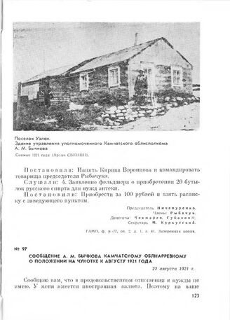 Сообщение А. М. Бычкова Камчатскому облнарревкому о положении на Чукотке к августу 1921 года. 27 августа 1921 г.