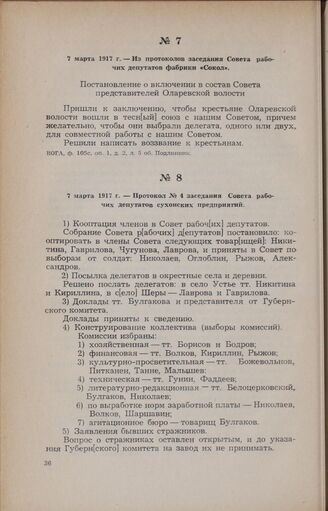 7 марта 1917 г. — Из протоколов заседания Совета рабочих депутатов фабрики «Сокол»