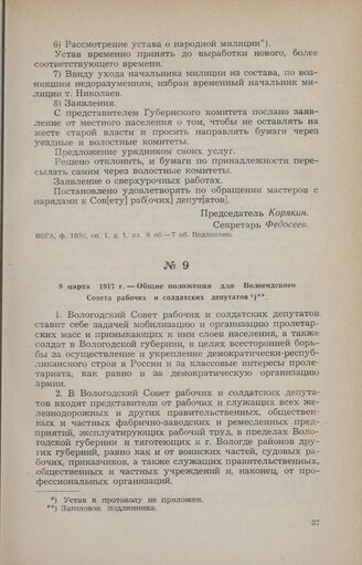 9 марта 1917 г. — Общие положения для Вологодского Совета рабочих и солдатских депутатов // «Известия Вологодского Совета рабочих и солдатских депутатов» № 2 за 23 апреля 1917 года.