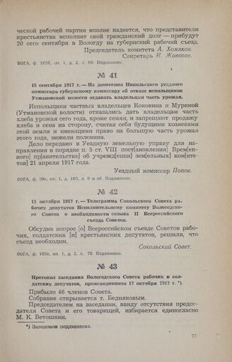 Протокол заседания Вологодского Совета рабочих и солдатских депутатов, происходившего 17 октября 1917 г. // ВОГА, ф. 53р, oп. 1, д. 230, лл. 133—134. Копия.