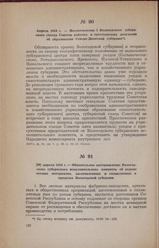 Апрель 1918 г. — Постановление I Вологодского губернского съезда Советов рабочих и крестьянских депутатов об образовании Северо-Двинской губернии // ВОГА, ф. 3с, oп. 1, д. 49, л. 30 об. Копия.