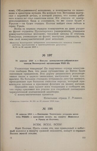 26 апреля 1919 г. — Воззвание Тотемского уездного комитета РКП(б) с...