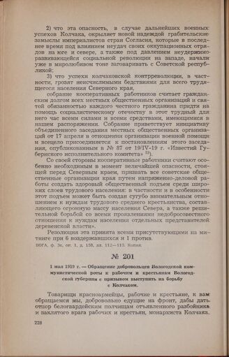 1 мая 1919 г. — Обращение добровольцев Вологодской коммунистической роты к рабочим и крестьянам Вологодской губернии с призывом выступить на борьбу с Колчаком