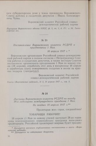 Листовка Воронежского комитета по поводу 28-й годовщины международного праздника 1 Мая. Не позднее 18 апреля 1917 г.