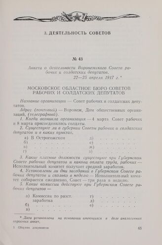 Анкета о деятельности Воронежского Совета рабочих и солдатских депу...