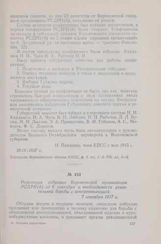 Резолюция собрания Воронежской организации РСДРП(б) от 6 сентября о необходимости решительной борьбы с контрреволюцией. 7 сентября 1917 г.