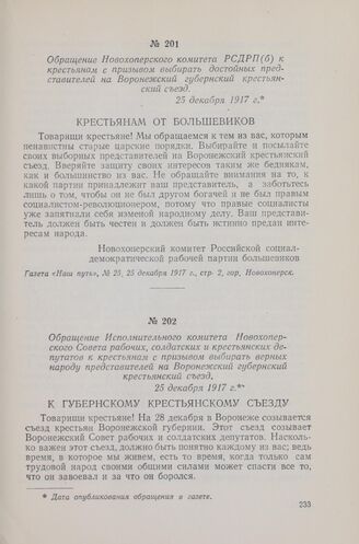 Обращение Новохоперского комитета РСДРП(б) к крестьянам с призывом выбирать достойных представителей на Воронежский губернский крестьянский съезд. 25 декабря 1917 г.