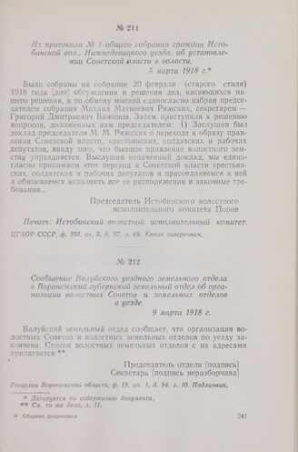 Сообщение Валуйского уездного земельного отдела в Воронежский губернский земельный отдел об организации волостных Советов и земельных отделов в уезде. 9 марта 1918 г.