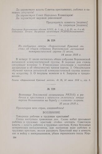 Из сообщения газеты «Воронежский Красный листок» об общем собрании Воронежской латышской коммунистической группы 11 июля. 14 июля 1918 г.